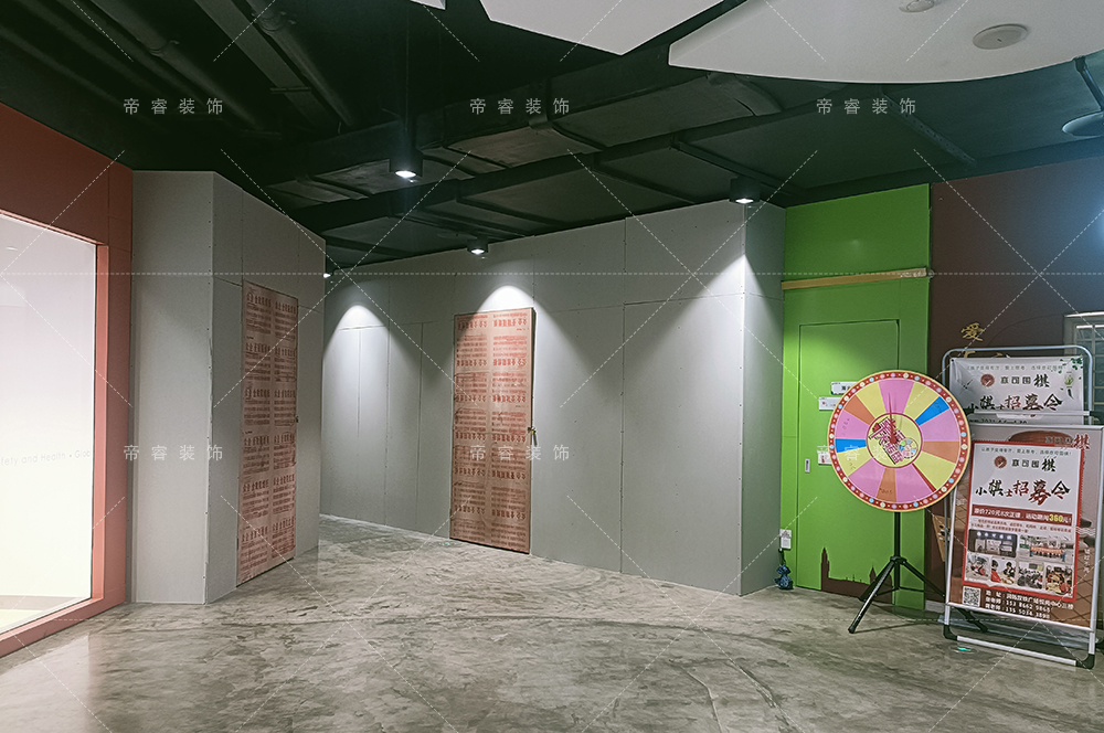 成都帝睿裝飾溫馨提示:假如裝修工程是位于商場以內,通常要把外側打圍高度延伸至頂,并做密封處理,目的是為了規避揚塵和阻擋部分施工噪音;裝修工程如果位于人口密集臨街地段,只需適當控制打圍高度,一般建議高度至少2米以上。